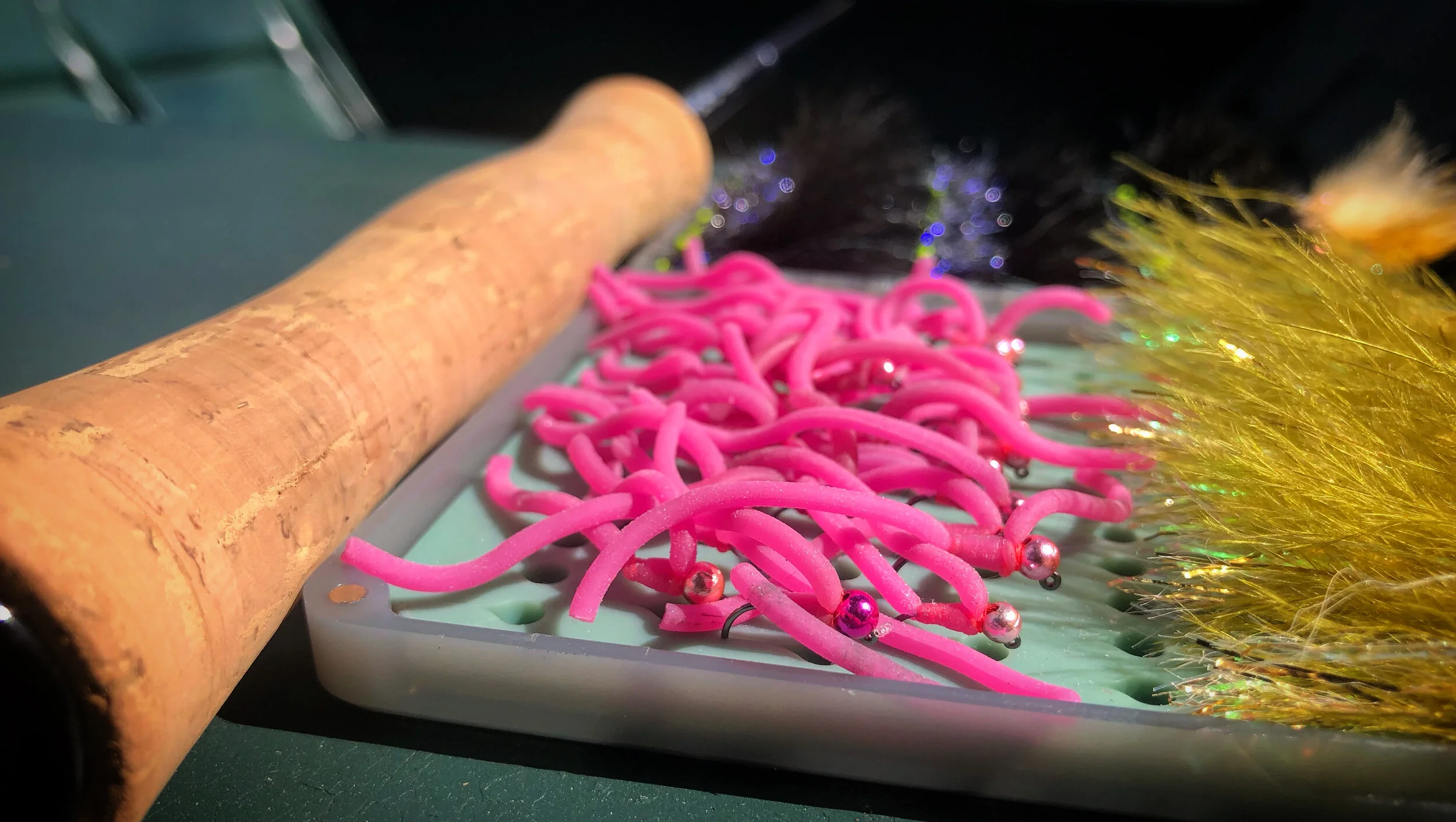Set 2 of these at 10’ and 15’ under your bung fly or bobber. Fishing this way will give you a good gauge on what depth the fish are at and can be extremely productive under the right conditions. Adjust your depth if necessary. Once the flies are vertical under the bung, give them some movement every so often to give the fly some life. If nothing has happened after 2 minutes or the boat has drifted too close to your bung, cast again. No need to cast far, closer the better. Don’t fall asleep when fishing the bung and squirmies as they will swallow this fly if your don’t set the hook promptly.